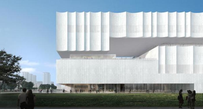 上博东馆外立面的设计中,曲线象征海洋,平整象征陆地,体现“海陆交汇”的概念