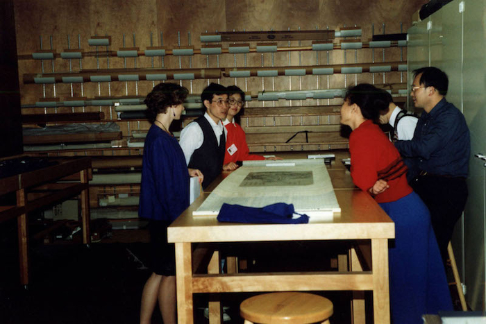 1992年4月至12月,中国文化交流中心应美国纳尔逊博物馆之邀,组织上海博物馆、北京故宫博物院赴美参展“董其昌世纪展”。此图为展品移交