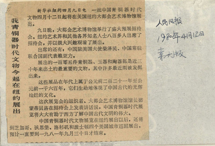 1980年,由国家文物局主办的“伟大的中国青铜时代”大展在大都会艺术博物馆对公众开放,上海博物馆是重要的参展单位之一,上博的青铜专家马承源先生担任了随展工作组组长。这个展览非常轰动,应该说是改革开放后文化交流领域的一件盛事。