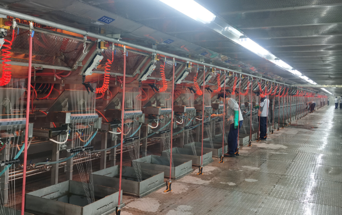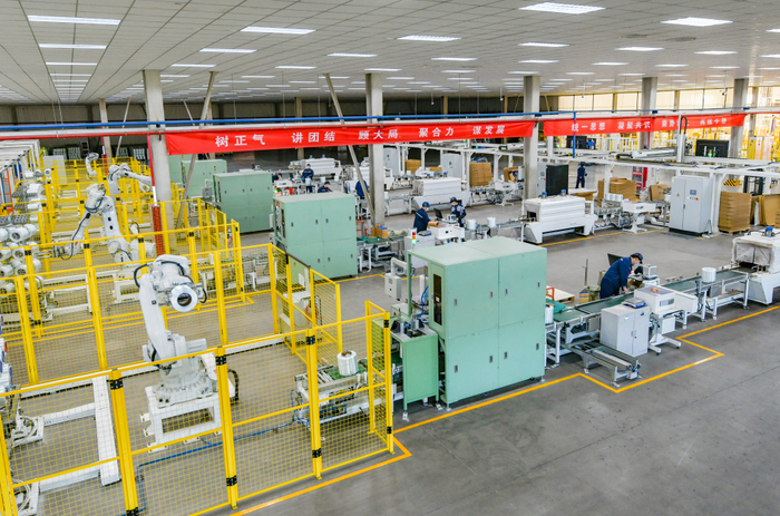与原有的两条生产线相比,冀中新材的两条新建生产线整个生产过程全部实现自动化、智能化,生产线运行效率和工艺品质实现跨越式提升,整体生产系统达到国内一流水平。与传统生产模式相比,人均工效提高2-3倍,较行业先进水平提高10%以上。