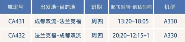 9月8日起 国航恢复成都-法兰克福每周四航班
