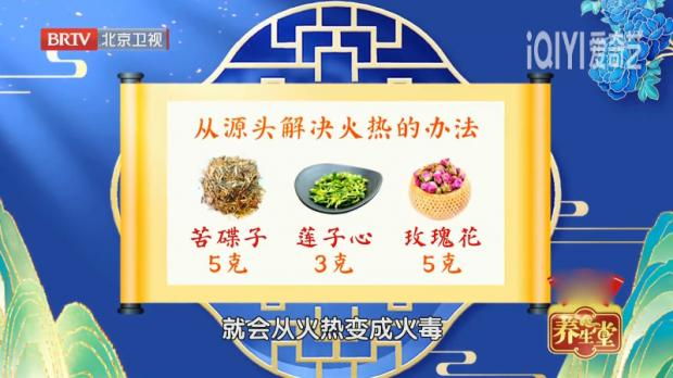 组成:苦碟子5克、莲子心3克、玫瑰花5克,可以用以上剂量泡水,一般泡两次即可。
