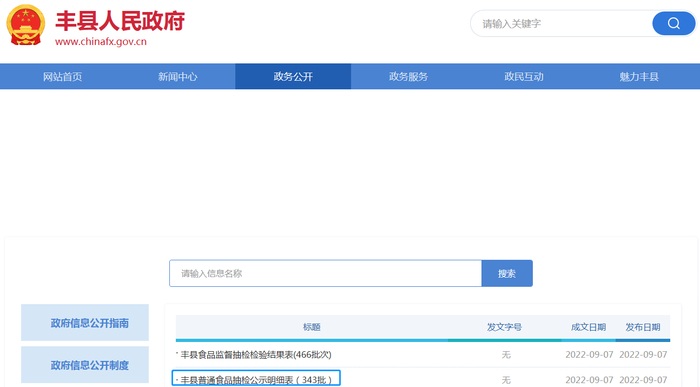 中国质量新闻网讯 近日,江苏省丰县人民政府网站发布343批次普通食品抽检公示明细表。