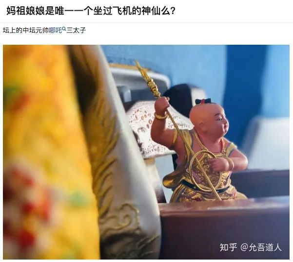 在知乎“妈祖娘娘是唯一一个坐过飞机的神仙么”的讨论下,一位叫德恩堂道学的网友,为这一维度作了其他补充。