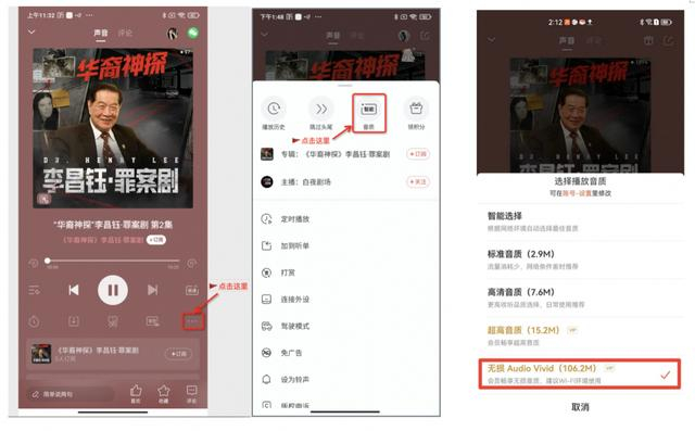 现在,喜马拉雅会员用户通过搭载HarmonyOS 3.0及以上版本的华为手机,在喜马拉雅App9.0.57.3版本下搜索“李昌钰 罪案剧”关键词找到专辑,进入播放页后,将音质调整为“菁彩声(Audio Vivid)”,搭配HUAWEI FreeBuds Pro 2耳机,即可体验到空间音频的震撼效果,享受360°空间环绕的超级感受。