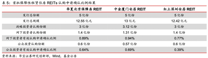 8月19日,首批保障性租赁租房REITs华夏北京保障房REIT、中金厦门安居REIT和红土深圳安居REIT公布认购申请确认比例结果,三只基金各发行5亿份,其中60%以上均为战略配售部分,其余份额则受到了网下投资者与公众投资者的热烈追捧,有效认购申请确认比例均不超过1%,意味着在认购100份额的情况下,实际确认份额不足1份,尤其是红土深圳安居REIT公众投资者有效认购申请确认比例仅为0.39%,足见该产品的火爆程度。一方面,尽管国内REITs发行步伐已有所加快,但数量上仍比较稀缺,现有产品的份额也以战略配售为主,给其他机构与公众的投资机会有限,因而新产品的发行往往伴随较高的参与热情;另一方面,基础设施REITs本身稳定的分红和资产增值潜力也吸引了散户和机构投资者的青睐。