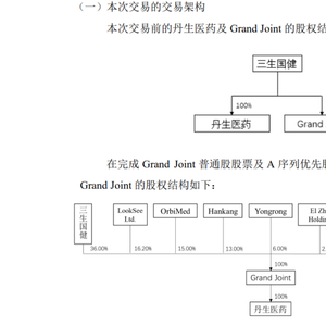 据了解,三生国健分别于今年1月11日召开第四届董事会第四次会议、1月28日召开2022年第一次临时股东大会,审议通过了《关于与关联方共同投资暨关联交易的议案》,支持将相关特定靶点的双特异性抗体的药物研发引入外部融资方,同意公司与其全资子公司GrandJoint 及相关主体签署《A序列优先股购买协议》《股东协议》《修订并重述公司组织大纲》及相关配套协议。三生国健以评估值为2.294亿元的标的无形资产出资形式设立丹生医药,拟将丹生医药置入Grand Joint并换取Grand Joint合计400股普通股。在完成前述股权结构调整后,由Grand Joint向6名A序列优先股投资人发行优先股股票进行股权融资。
