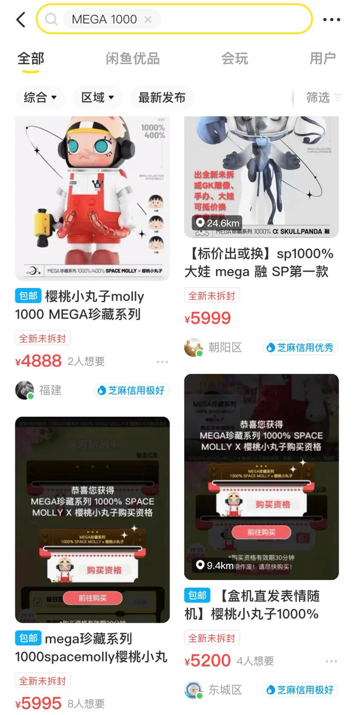 “问了几个群没人要。”泡泡玛特玩家金雄(化名)最近在泡泡玛特小程序上抽中了MEGA珍藏系列1000%SPACE MOLLY可口可乐的购买资格。“本以为很多人想要,结果问了几个群都没人要。”金雄最终放弃了购买资格。