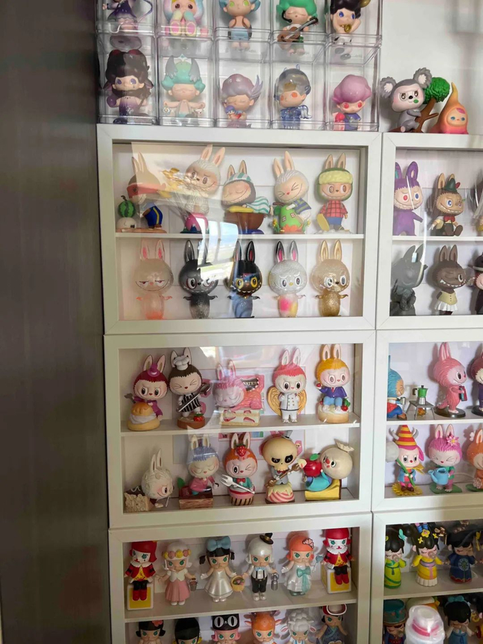 “家里有近2000个娃,前后花的钱加上买柜子装娃差不多15万有了,现在基本不买了。”拥有近2000个泡泡玛特玩具的李子说,泡泡玛特玩家将买来的盲盒玩具称为“娃”,在“娃圈”里,大家把“娃”看做自己的孩子,是倾注了感情的。她起初买盲盒是为了摆出来好看,但为了想要的款会抽到很多不想要的。如今,二手市场不好转卖以后,她逐渐收紧了自己在盲盒上的预算。
