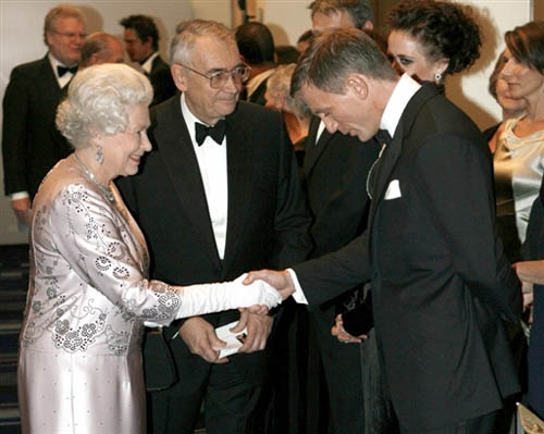 2021年9月28日,最新一集007电影《无暇赴死》在伦敦阿尔伯特音乐厅举办全球首映礼。由于年事已高,伊丽莎白二世没有亲临,查尔斯王子夫妇和威廉王子夫妇照例作为王室代表出席——影迷不会忘记,2006年,在丹尼尔·克雷格第一次出演007电影《皇家赌场》的首映礼上,女王可是来了的,她亲自为这个此前饱受争议的新晋007站台。当制片人迈克尔·G·威尔逊把丹尼尔·克雷格领到女王面前时,后者颔首挺胸,一手背在身后,谦恭而羞涩地主动同女王握手致意。
