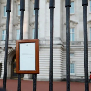 ▲9月8日,英国伦敦白金汉宫大门上挂出的英国女王伊丽莎白二世去世的讣告。(新华社)