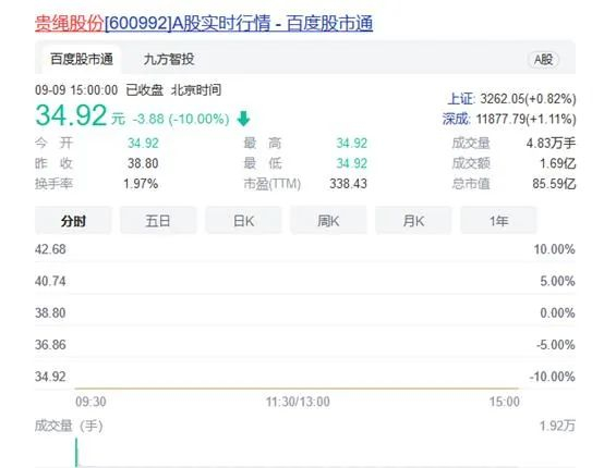 贵绳股份一字跌停