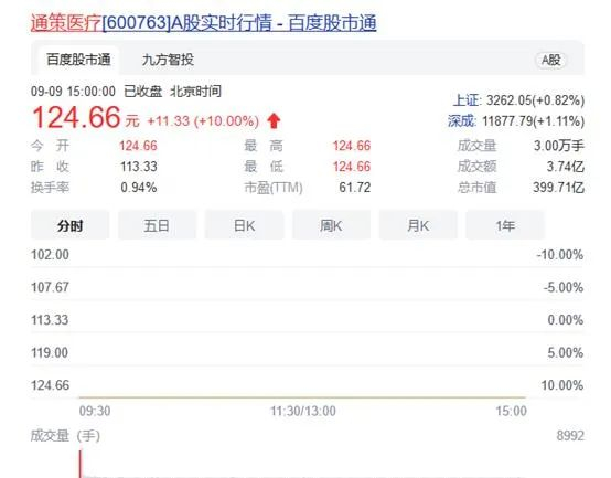 医疗器械板块今日爆发,“牙茅”通策医疗开盘即一字涨停,截至收盘,该股报124.66元,成交3.74亿元,当前市值400亿元。