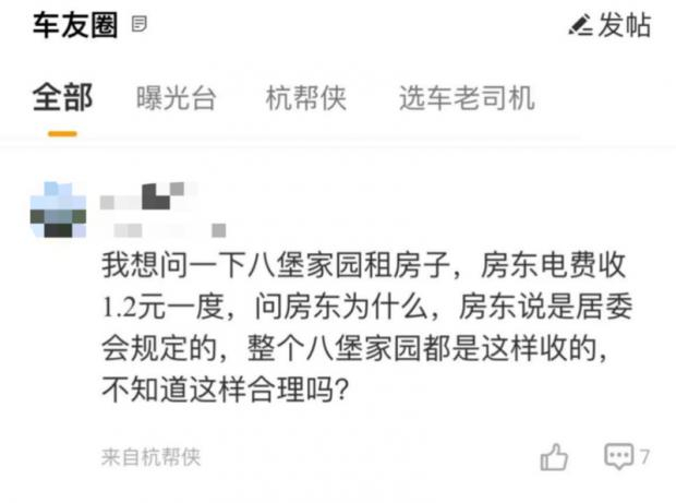 杭州交通91.8官方客户端“开吧”吧友孙先生发帖提问称,他在八堡家园租了房子,房东电费收1.2元一度,这样合理吗?