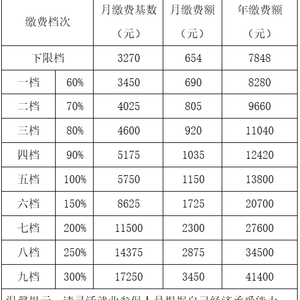 (一)灵活就业人员养老保险费九档及下限档月缴费基数