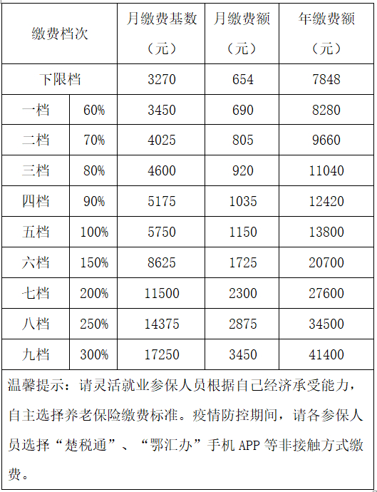 近期,湖北省人力资源和社会保障厅、湖北省医疗保障局、国家税务总局湖北省税务局联合印发了的《关于我省2022年度社会保险缴费基数标准的通知》,通知明确了2022年度城镇职工基本养老保险、失业保险、工伤保险(以下简称社会保险)缴费基数标准及个人缴费基数上下限。为有力推进社保业务“掌上办”、“网上办”,特将相应缴费基数标准、缴费方式等事项温馨提示如下: