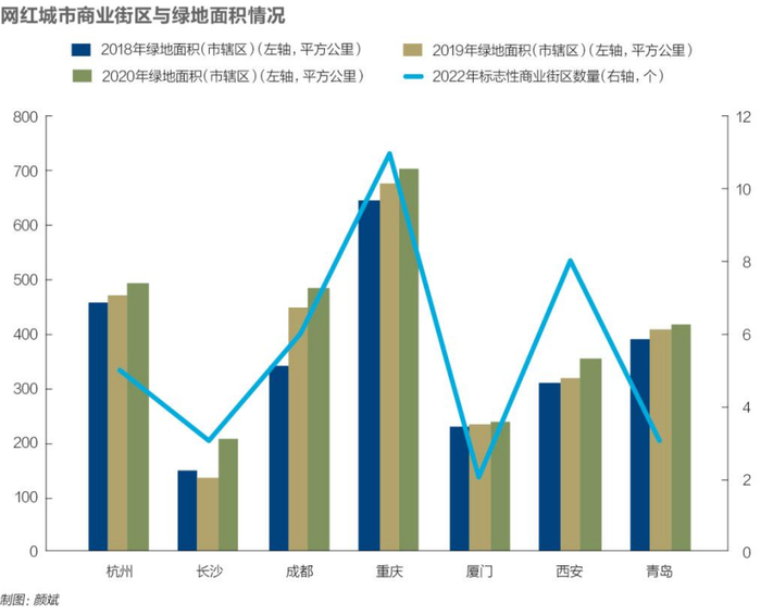 从绿地面积看(市辖区),重庆也是绿地最多的城市,2020年达到707平方公里。其次是杭州、成都、青岛、西安、厦门、长沙,2020年分别为496平方公里、485平方公里、418平方公里、354平方公里、237平方公里、206平方公里。