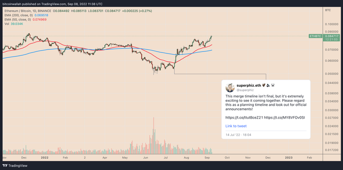 合并热情提振 ETH/BTC 对