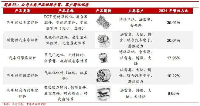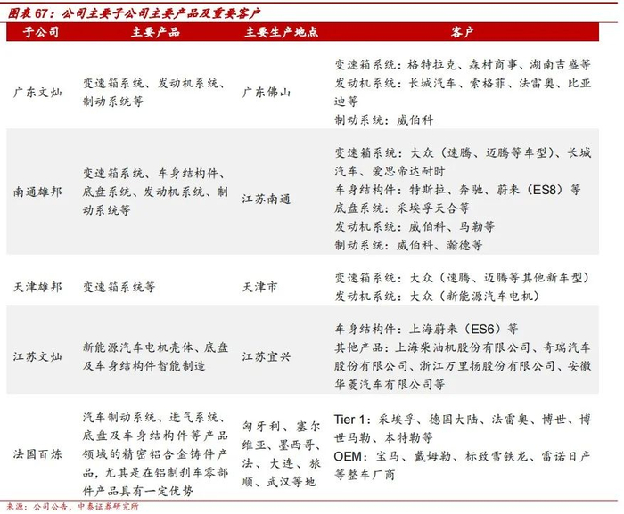 2020年12月10日公司完成对法国百炼集团100%股权的收购,实现了技术工艺的补齐。目前,在汽车零部件的铝铸件生产中,高压铸造、低压铸造和重力铸造互相不能替代,属于相互补充的工艺方式。公司收购前的传统技术优势为高压铸造,法国百炼集团收购完成后,公司工艺能力得到完善,产品品类得以扩充,新增涡轮增压系统产品线,以及更复杂的铝合金轻量化刹车件、底盘结构件等。生产基地布局方面,公司以收购法国百联集团为契机,顺利将生产开拓至欧洲等国家,将有利于公司运输成本的降低。