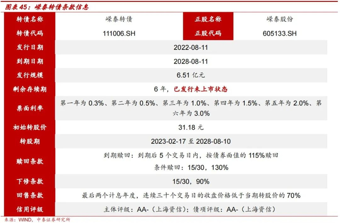 · 嵘泰转债处于已发行未上市状态,下修条款保护性强