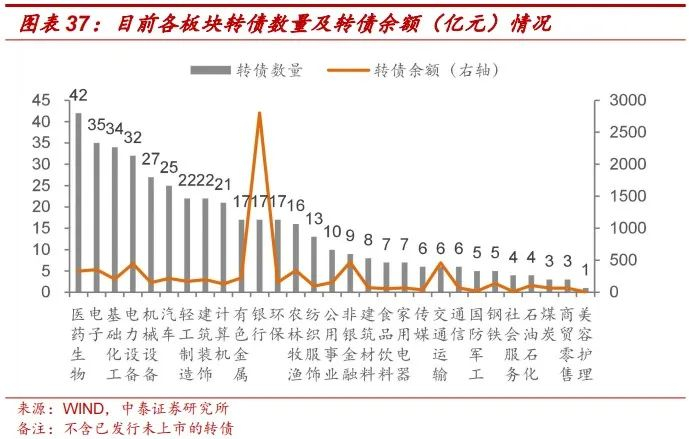 汽车板块转债数量位居前列、余额规模位居中游。截至8月31日收盘,转债市场现存424只转债,总余额达7623.6亿元。其中,转债数量排名前五前列的行业分别为医药生物(42只)、电子(35只)、基础化工(34只)、电力设备(32只)、机械设备(27只)。转债存量方面,银行、非银及交通运输分别以2801.4亿元、470.3亿元、460.2亿元的存量位居前三。