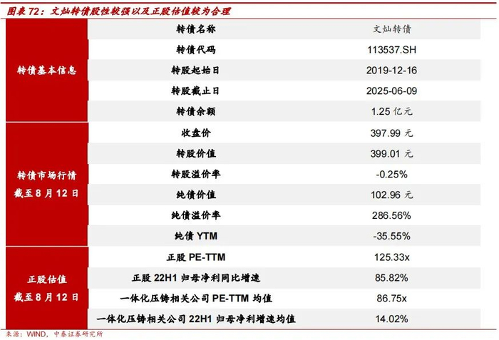 · 文灿转债正股估值合理,看好公司成为一体化压铸赛道的龙头企业