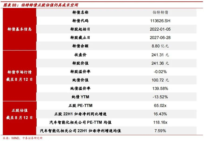 四、汽车智能化领域重点转债标的