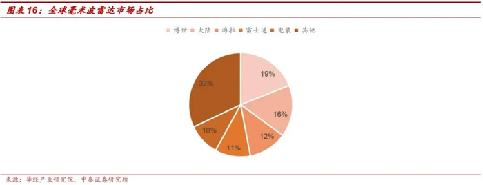 毫米波雷达是目前最主流的环境感知传感器之一。目前,对比各类环境感知传感器,毫米波雷达因为其较低的成本和优异的探测距离及响应时间,大量的应用在自适应巡航系统(ACC)、汽车主动安全技术(AEB)、前方碰撞预警系统(FCW)等智能化领域;2021年毫米波雷达市场占比达到28%。