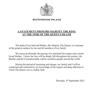 (原标题《白金汉宫宣布!传位于查尔斯!》)