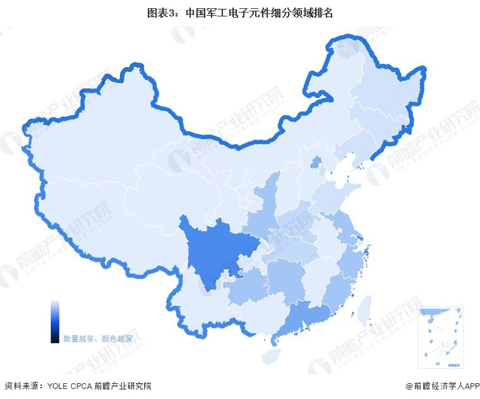 我国军工电子产品的种类较多,由于其应用的特殊性,行业内企业多布局在国内区域。军用产品种类较多,基本可实现自给自足。