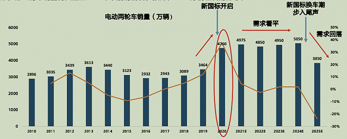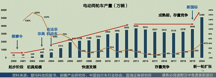从1995年第一台电动两轮车在清华大学被研制出现,到如今的年销量近5000万辆、市场规模近千亿,电动两轮车的生产方式(组装、贴牌)基本没有改变,铅酸电池的储能基本盘也没很大变化,虽然智能化的交互式应用未来会越加普及,但并不足以刺激激烈的市场变革。