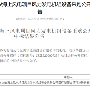 国华投资山东500MW海上风电项目风力发电机组设备采购公开招标中标结果公告