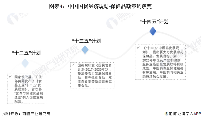 “十二五”计划(2011-2015年)时期,首次将“营养与保健食品制造业”列入国家发展规划。“十三五”计划(2016-2020年)时期,国家提出要着力发展保健食品、营养强化食品、双蛋白食物等新型营养健康食品。至“十四五”计划(2021-2025年)时期,国家层面提倡要大力发展中药保健品。同时,自2015年以来,国家市场监督管理总局、国家卫生健康委员会等多部门都陆续印发了支持、指导和规范保健品的发展政策,涉及保健品命名和宣传规范、保健食品安全等内容。