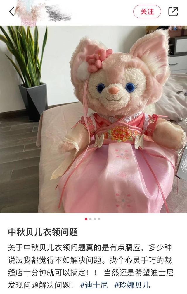 近日,因为可爱而走红的迪士尼角色玲娜贝儿陷入争议。起因是上海迪士尼乐园在中秋之际,推出了玲娜贝儿中秋限定款毛绒玩具,却被网友指出该绒毛玩具身穿的服饰为“左衽”设计。网友解释说,在汉服形制中,只有死者才用“左衽”,因此玲娜贝儿所穿的中秋服饰是“丧服”。