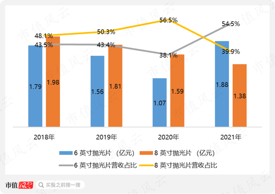 2021年,8英寸抛光片营收下滑同样跟拆迁有关,8英寸硅抛光片设备调试周期相对6英寸较长,且客户验证周期相对较长。目前,有研硅搬迁前的主要41家客户已有39家通过认证。