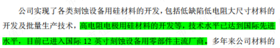 刻蚀用硅材料全国唯二,相较行业老大劣势明显