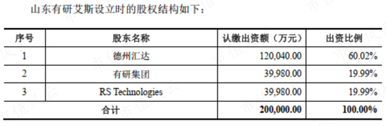2020年3月,有研总院、RS Technologies和德州汇达共同设立山东有研艾斯半导体材料有限公司(以下简称“山东有研艾斯”),德州汇达是德州市的地方政府引导基金。