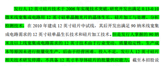 以有研硅为例,虽然其12英寸硅片2006年就实现技术突破,但由于多种原因始终无法实现量产,技术始终停留在理论层面。