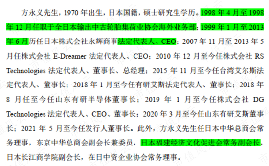 公开信息显示,方永义,日籍华人,祖籍福建,16岁就前往日本留学,1998年硕士毕业后,短暂的给别人打过几个月工,然后开始自己创业。