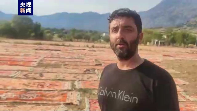 总台记者 顾玉婷:当地人怎么才能够保证这里的地毯不会被雨水淋湿呢?首先,他们会把地毯集中放到一个木质的架子上,这个架子离地面还有一定的距离,所以当雨水冲刷地面的时候,地毯不会湿;其次,他们会在这个地毯堆上,铺上一层塑料的防雨罩,然后用绳子固定起来,所以等到雨天来临的时候,里面的地毯会得到很好的保护。