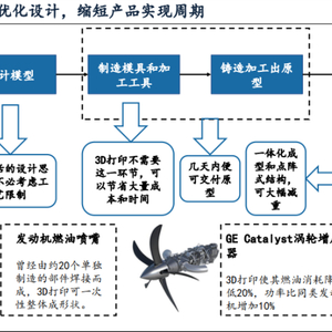 金属增材制造工艺能够契合航天航空产业的苛刻条件。例如,飞行器要求高速、续 航时间长、安全高效低成本等条件,对结构设计、材料和制造提出了更高要求。对于 增材制造这一改进工艺流程,其较多技术优势能够很好的契合航空航天的多项要求。例如,结合上文,(1)增材制造可实现传统减材工艺无法实现的复杂几何结构件, 实现传统工艺无法加工的蜂窝点阵结构,能够在保证性能的前提下大幅减轻部件质 量,达到提升航空航天装备机动性、速度及节省高昂的航空燃油费的目的;(2)同 时3D打印技术能够缩短高性能部件的制造流程,无需研发制造部件使用的模具,大 大缩短了研发周期,降低时间成本,利于加快项目进程;(3)因航空航天装备服役 环境恶劣,尤以航空发动机为典型,使用环境为高温、高压,传统材料难以承受,适 配于此类环境的材料的研制难度大、价格高昂。增材制造工艺可大幅提高材料利用 率的特点可较好契合这特征,可节省装备研制经费。
