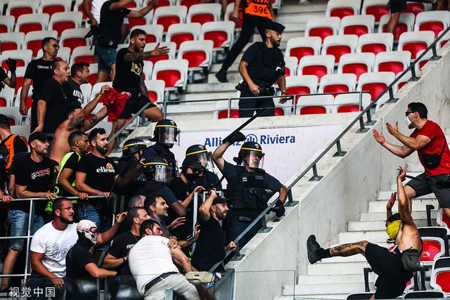 期间,法国球迷、德国球迷以及现场保安在安联里维埃拉球场看台上展开“大乱斗”,现场一片混乱,比赛被推迟近一小时后才得以进行。最终,尼斯主场1-1战平科隆。