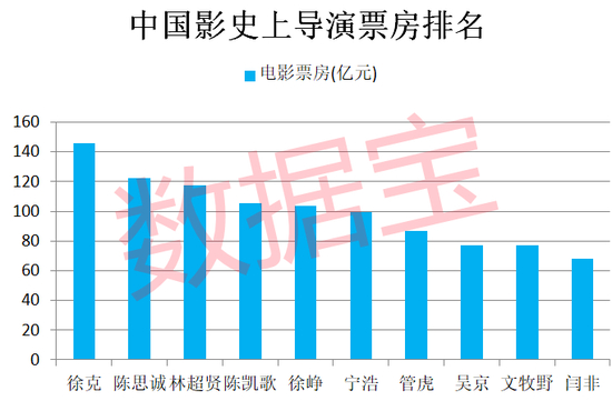 据猫眼专业版,中国影史上共有5位导演总票房超过百亿元,分别是徐克、陈思诚、林超贤、陈凯歌、徐峥。总票房最高的导演是徐克,共导演了72部电影,累计票房145.8亿元。陈思诚总票房122亿元排在第二位,他是中国首位百亿票房的导演,也是百亿票房导演中最年轻的一位。陈思诚2006年因在电视剧《士兵突击》中饰演角色“成才”而被大众熟知。