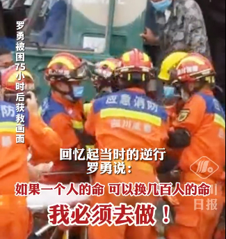 8日,被困75小时后罗勇得救,他说:“如果一个人的命,可以换几百人的命,我必须去做!”据罗勇介绍,与他同被困在水电站的另一名小伙子甘宇,至今还未找到,救援队已徒步进行搜救。