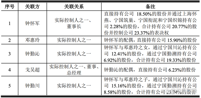 同时,邓惠玲直接持有紫燕食品15.90%的股份,钟勤川、钟勤沁通过宁国川沁、宁国勤溯合计持有43.08%的股份,戈吴超直接持有6.23%的股份。据此,钟怀军、邓惠玲、钟勤沁、戈吴超、钟勤川合计持有紫燕食品85.98%的股份并控制公司88.58%的表决权。