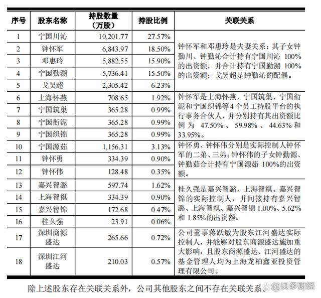 招股意向书显示,紫燕百味鸡的前十大股东里,仅有两位是“外人”,其他均为亲属或亲属持股的平台。这些股东里,有二代掌门人钟怀军,其配偶邓惠玲,其儿女钟勤川、钟勤沁,还有钟勤沁的配偶戈吴超,5人并签署一致行动协议,是紫燕食品的共同实际控制人。