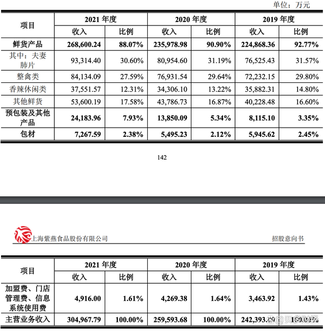 招股意向书介绍,紫燕百味鸡是国内规模化的卤制食品生产企业,致力于卤制食品的研发、生产和销售,主打产品包括夫妻肺片、百味鸡、藤椒鸡等以鸡、鸭、牛、猪等禽畜产品以及一些素菜卤制食品,产品配方传承川卤工艺,融合了川、粤、湘、鲁众味。