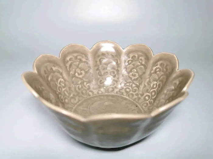 Lot 2343 北宋 耀州窑青釉印花十曲花口温碗