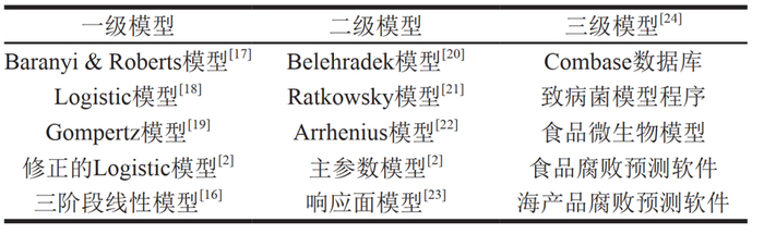 目前,预测食品预测微生物学(Predictive Food Microbiology)使用数学模型、统计学、应用计算机等方法描述微生物的生长过程,一般分三级模型。一级模型用来表征在一定生长环境和条件下微生物数量与时间的关系;二级模型在一级模型上加入环境因子;三级模型则将一级、二级模型等多个模型整合为一个软件系统[9]。传统预测微生物学模型构建方法以及食品预测微生物学软件都已经比较完善[10]。