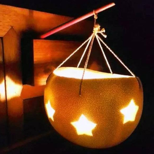 不光要“舞流星”,还要亮桔灯。刘孝昌说到,在中秋时分,成都郊外的桔子刚刚上市,但外皮大多是青的,于是孩子们把桔子上面挖个圆盖,再把内瓤掏空,穿三根细线,里面放个蜡烛或清油做芯子点燃。“这个习俗,就叫做亮桔灯。无论是穿根竹筷子悬挂在各家门上,还是娃娃些提起到处玩,都是节日中一道极为亮丽的风景线。”